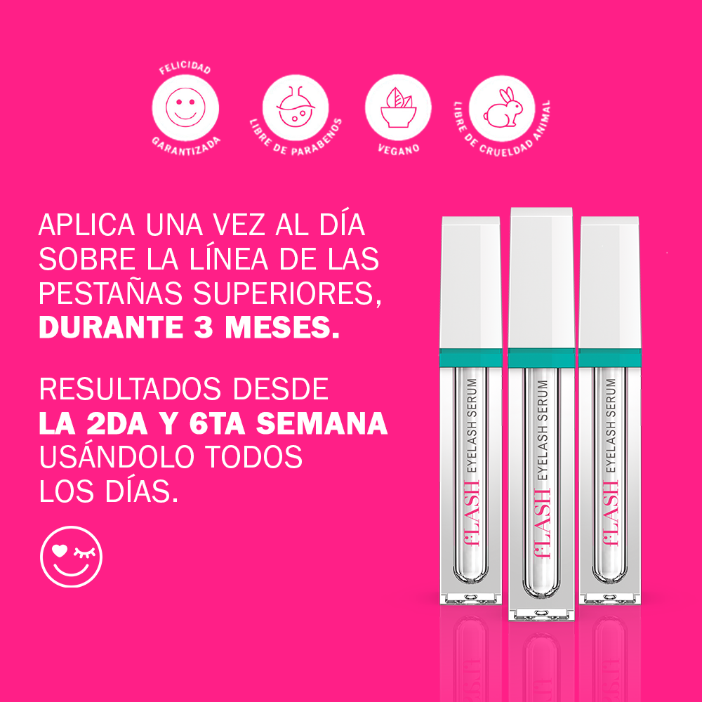 Con solo una aplicación diaria, en pocas semanas notarás pestañas más largas, densas y resistentes.