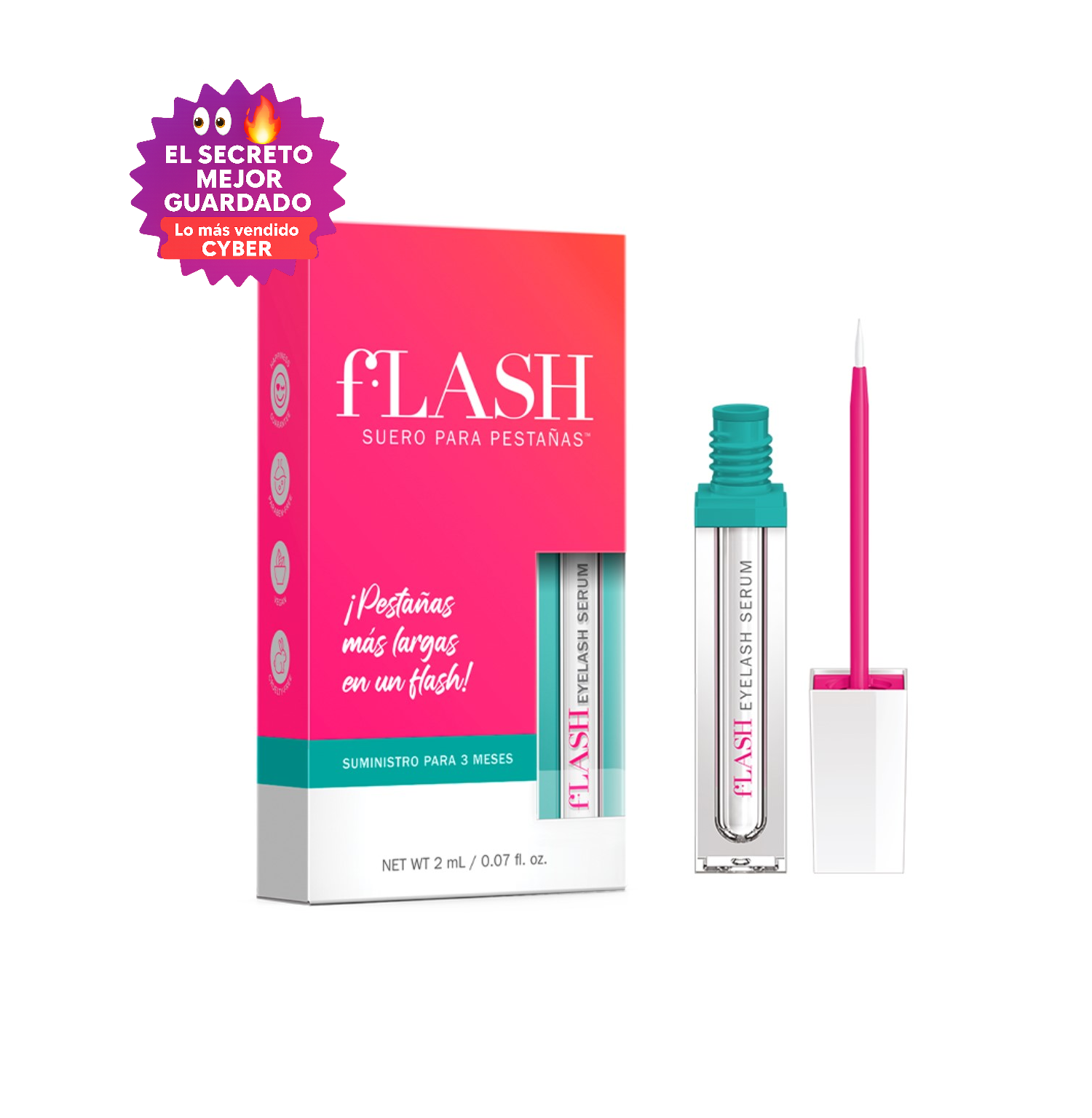 Cada frasco de fLash contiene 2 ml de serum enriquecedor para pestañas. Esto cubrirá un tratamiento completo de 3 meses, asegurando que tendrás hermosas pestañas en cada momento.